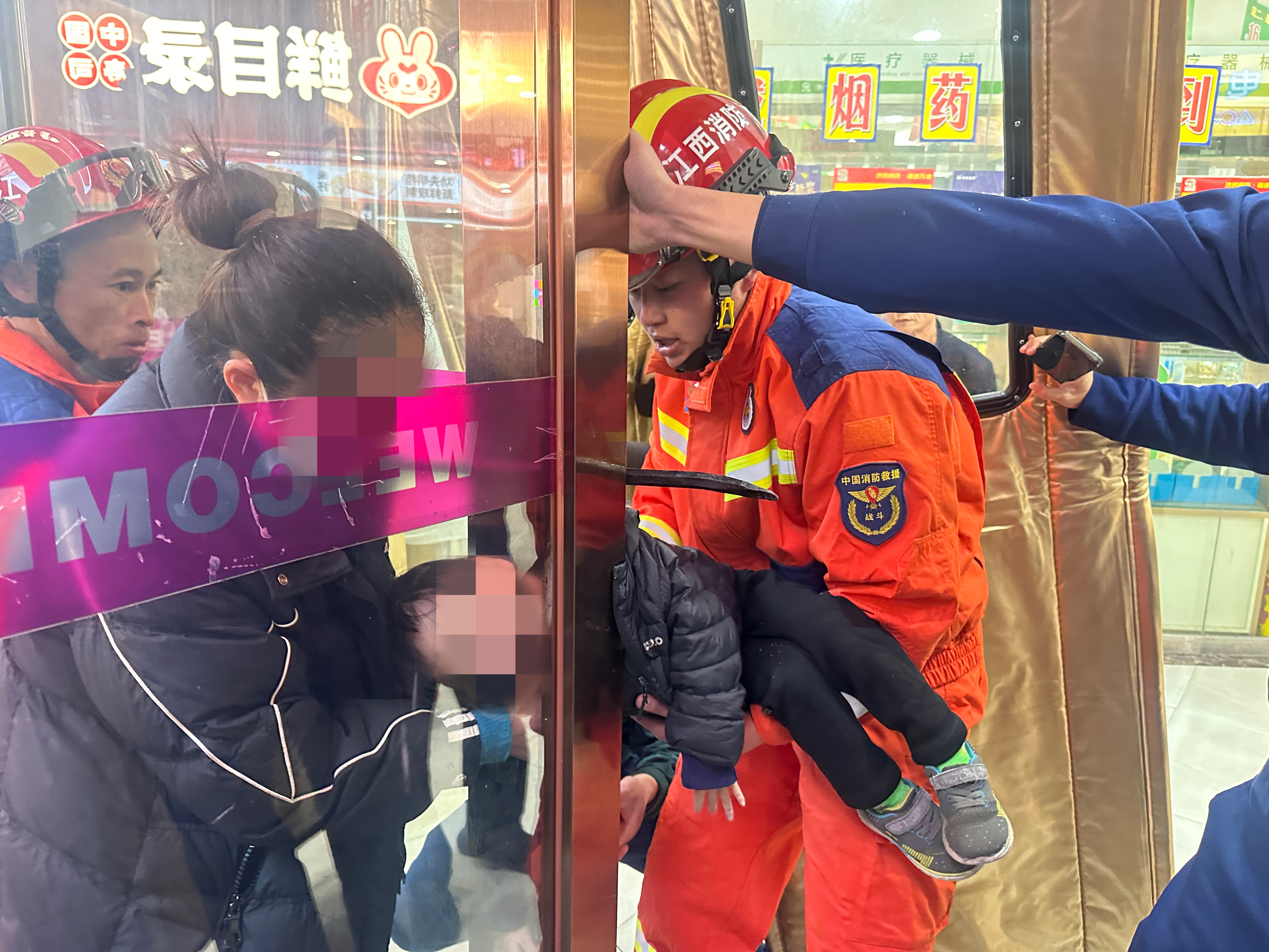 12月10日,多位网友发布视频称,在江西赣州于都县一商场门口,一位女童的脖子卡在玻璃门缝隙间。于都县消防救援大队向记者证实了此事。好消息是,在多方协作救援下,女童已脱离危险并出院。