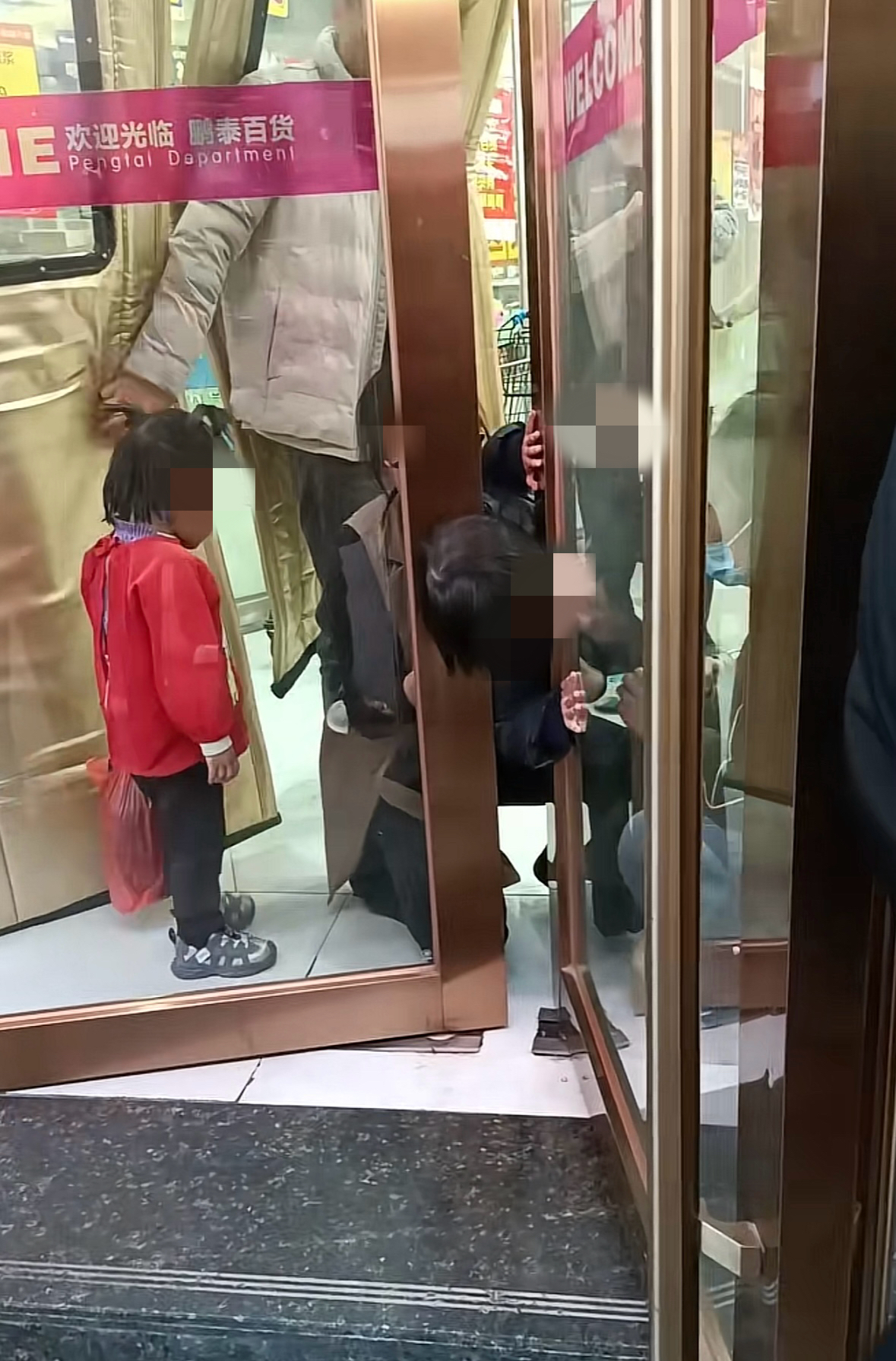 女童的头部卡在了玻璃门缝里(网友视频截图)创达盈